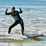 She becomes fascinated by a group of male surfers, particularly Moondoggie. Encouraged (and somewhat teased) by them, she buys a surfboard, learns to paddle, learns to surf, and eventually becomes part of the surf crew—gaining the nickname “Gidget” (girl + midget).