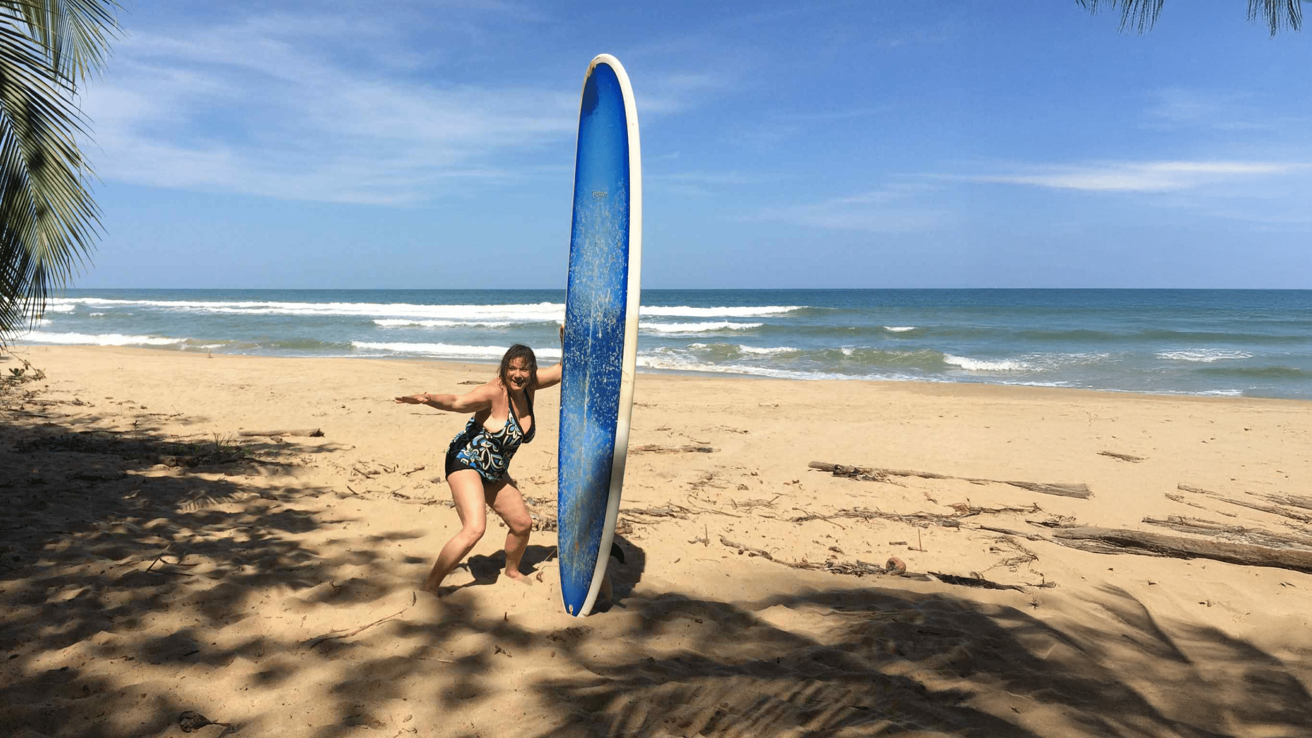 I tried surfing for the very first time on a solo trip to Costa Rica, where I went to celebrate my 65th birthday. I had always wanted to surf, but the time never seemed right, and I didn’t feel like I had the resources or support to make it happen.